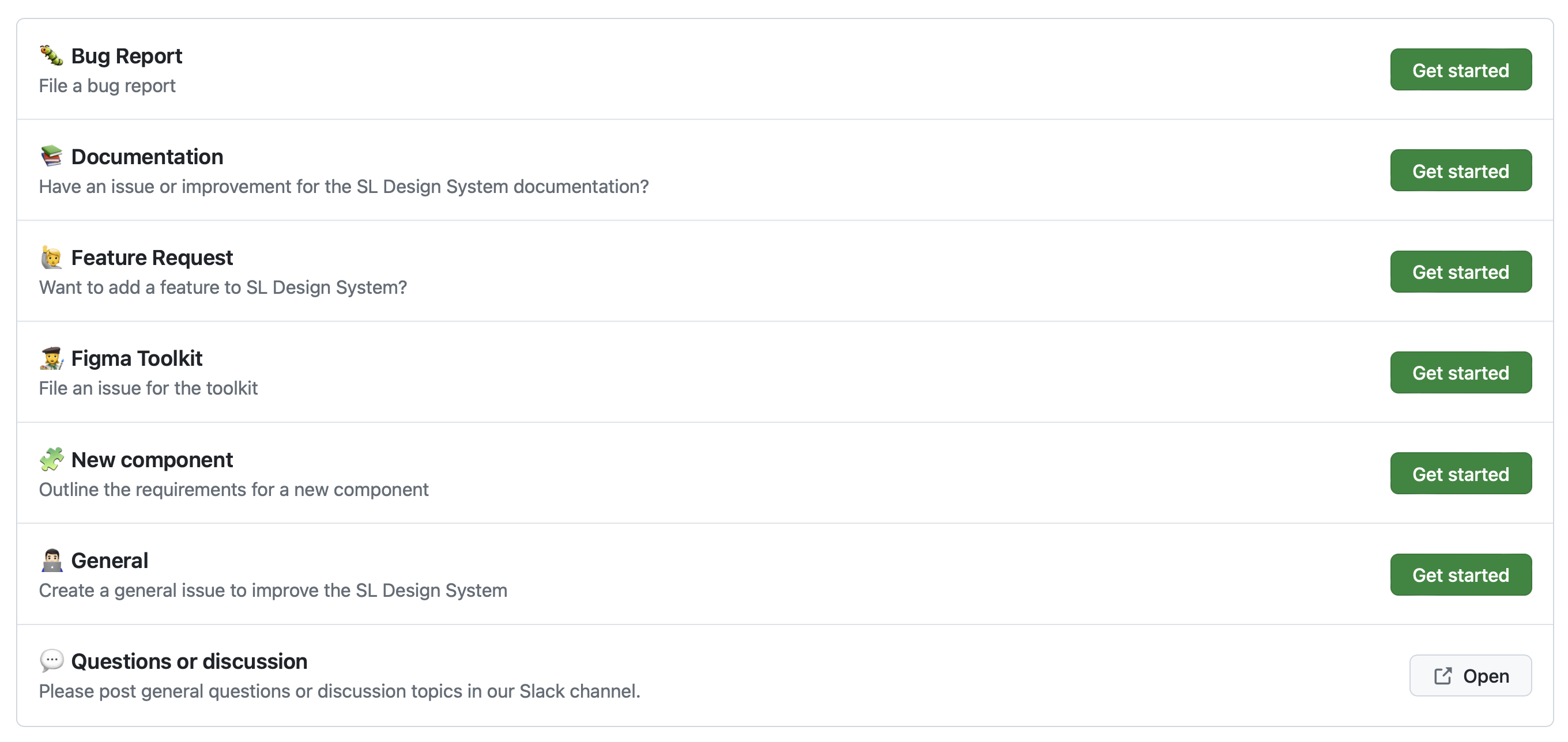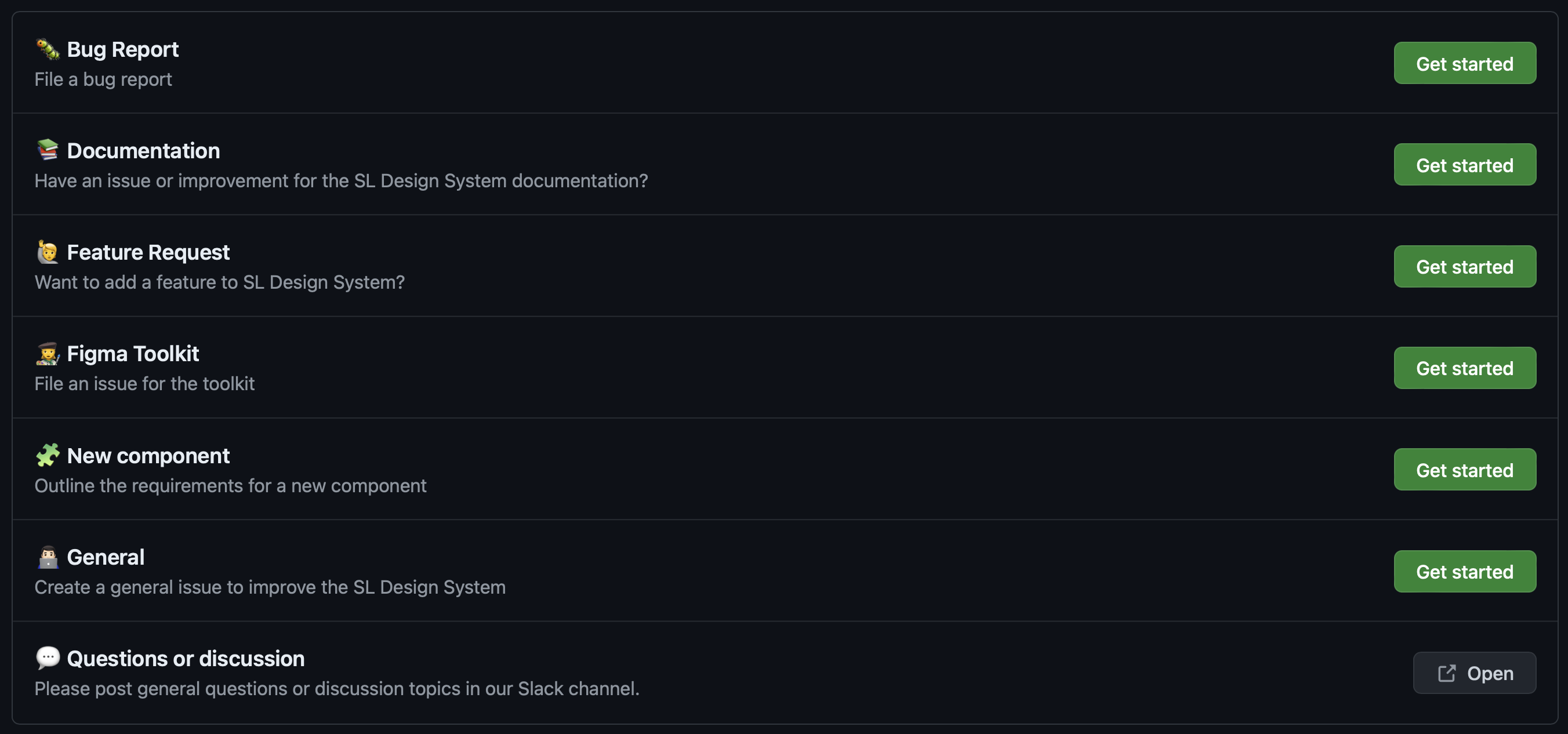 Previously, you could only report bugs, but now you can also request new components. We’ve created issue templates for the Figma toolkit and documentation, empowering you to submit and monitor directly through GitHub.